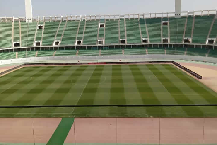 Le stade d’Agadir lors de la visite des journalistes.