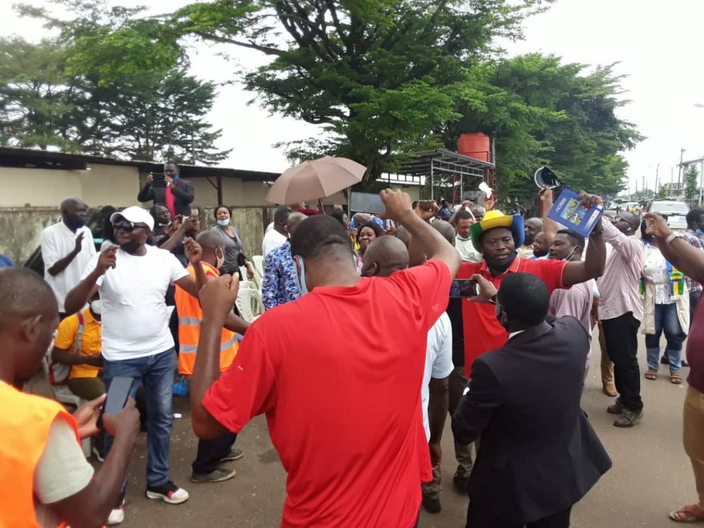 Il faut dire que cet événement qui devait initialement se tenir au terrain de basket d’Awendje, n’a pas pu avoir lieu à cet endroit. La police étant arrivée pour évacuer les syndicalistes de ce lieu. Conséquence : les syndicalistes ont tenu l’AG à leur siège, situé quelques mètres plus loin, en débordant malgré eux sur la voie publique, du fait du nombre élevé des participants.