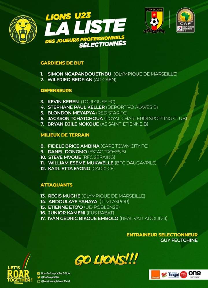 Libreville, 14 mars 2023(AGP) – Le sélectionneur des U23 du Cameroun, Guy Feutche, a battu le rappel des troupes ce mardi 14 mars, en concoctant une ossature largement composée de joueurs expatriés, en vue de la double confrontation contre le Gabon.