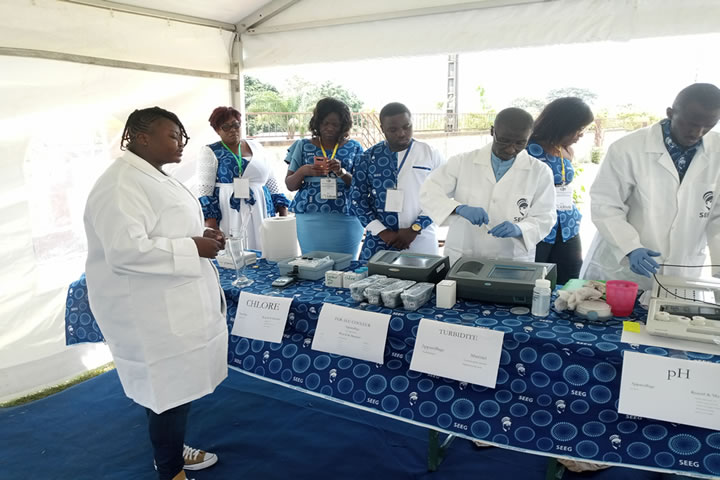 L’exposé de la Société d’Energie et d’Eau du Gabon (SEEG) sur «la production des eaux souterraines au Gabon», a permis de développer le volet opérationnel de la production et de la distribution d’eau potable à partir des ressources en eau brute souterraine selon le concept «rendre l’invisible visible». Aussi, la participation de la SEEG à cette rencontre multisectorielle, s’est articulée autour d’un triptyque : communication scientifique, stand d’exposition et démonstration du procès d’analyse des eaux en laboratoire.