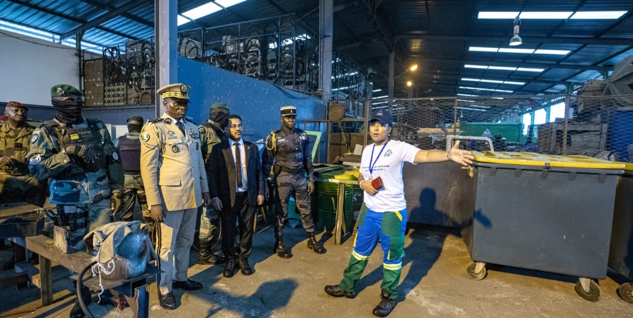 Le périple de Mindoubé a par la suite conduit le chef de l’Etat, à la base de la Société clean Africa dans le 5ème arrondissement de Libreville, où il a visité le centre de tri de déchets et les ateliers soudure et mécanique. Avant d’échanger avec les agents.