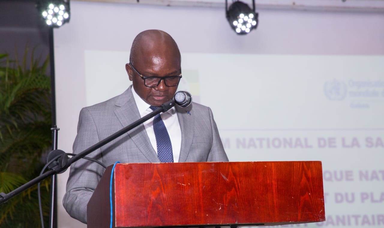 Le ministre de la Santé, Pr. Adrien Mougougou, pendant son allocution.