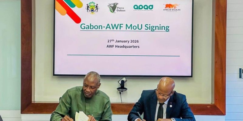 LIBREVILLE, 30 janvier 2026 (AGP) – Le ministre des Eaux et Forêts, de l’Environnement, du Climat, chargé du Conflit homme-faune, Maurice Ntossui Allogo, et le président-directeur général de l’African Wildlife Foundation (AWF), Kaddu Sebunya, ont signé, jeudi, un protocole d’accord officialisant l’organisation, à Libreville en 2027, de la troisième Conférence du Réseau des directeurs d’aires protégées d’Afrique (APAD), a appris l’Agence gabonaise de presse de source ministérielle.