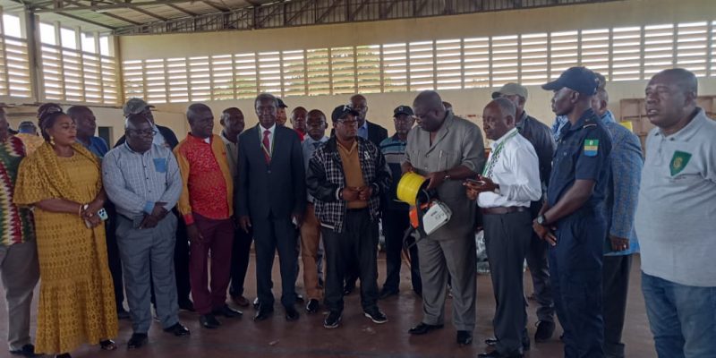 Cette dotation de matériel était composé essentiellement de brouettes professionnelles (90), de débroussailleuses (90), tronçonneuses (09), bobines (90), huiles, machettes (270), pelles (180), râteaux, bottes.