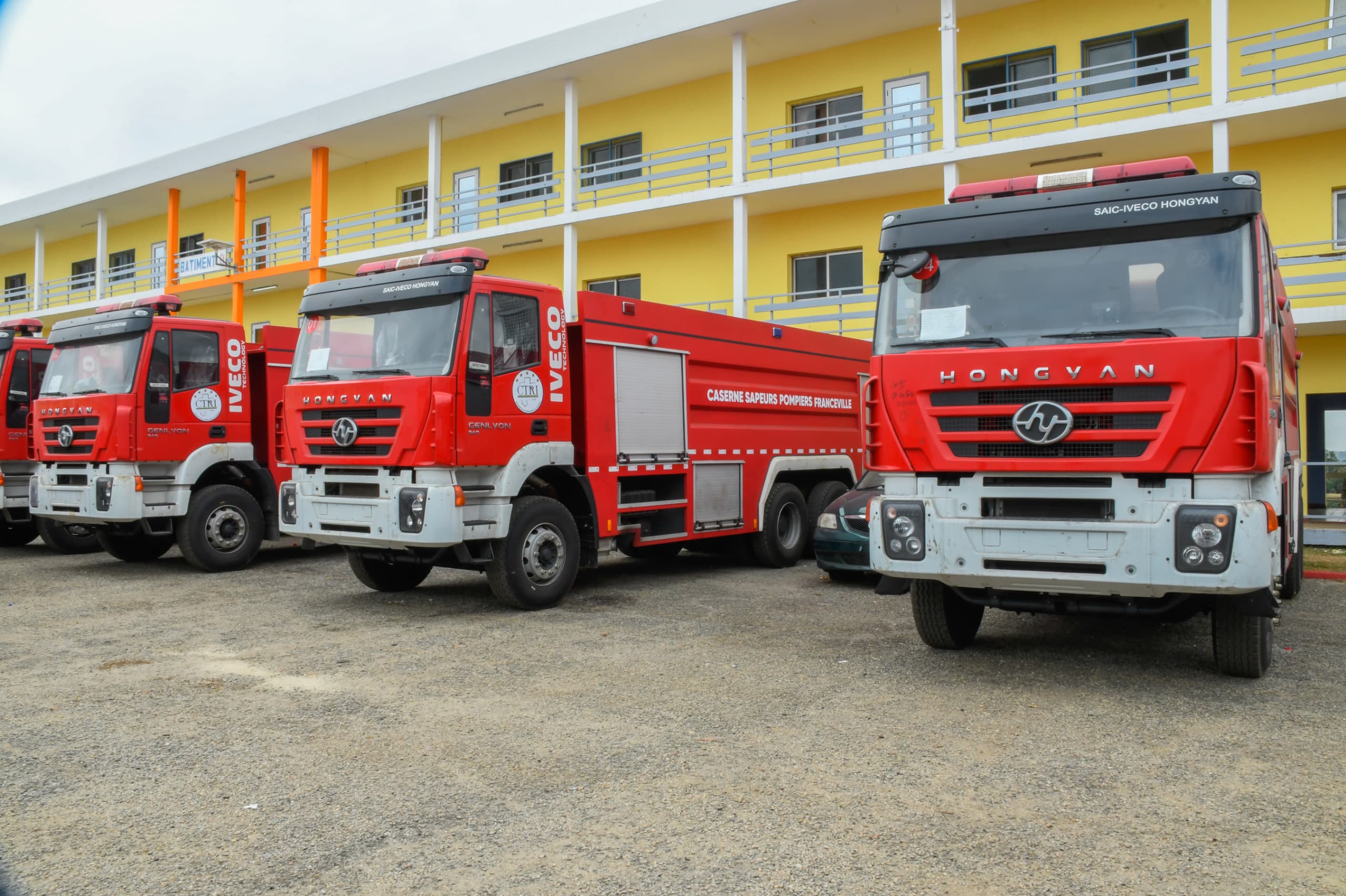 Ledit matériel a été réparti ainsi qu’il suit : 1 camion pour la Garde Républicaine, 2 camions et une ambulance pour la caserne d’Oyem, deux camions et une ambulance pour la caserne de Franceville, un camion et une ambulance pour celle de Port-Gentil, un camion pour la caserne de Nzeng-Ayong, etc.