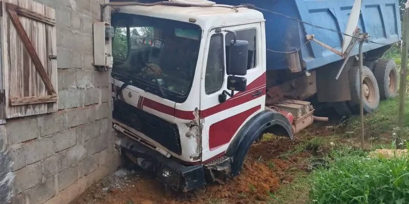LÉBAMBA, 28 novembre 2025 (AGP) – Un camion benne a terminé sa course, jeudi vers 17 heures, contre une maison située dans le quartier Camp-de-Bonheur à Lébamba, chef-lieu du département de la Louétsi-Wano, dans la province de la Ngounié (sud du Gabon), a appris l’Agence gabonaise de presse de sources concordantes.