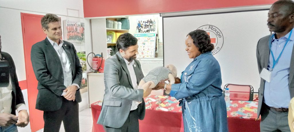 Libreville, 1er septembre 2022 (AGP)-En marge de leur participation à la Semaine africaine du climat qui se tient à Libreville, Adesti Tripathee et Stéphane Bonamy, deux responsables de la Croix-Rouge internationale, ont offert 40 mannequins de dernière génération à la Croix-Rouge gabonaise, pour de meilleures formations en gestes de premiers secours (détection des arrêts cardiaques, pratique des massages cardiaques, exercice du bouche à bouche, etc.)