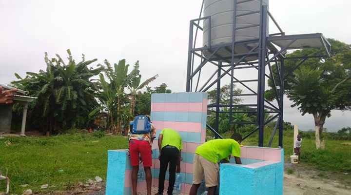 Cet ouvrage a nécessité la construction d’un château d’eau de 2000 litres et de 5 bornes fontaines devant bénéficier à 800 foyers.