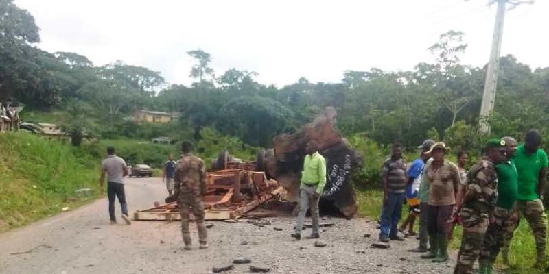 Les faits se sont déroulés au quartier Angone, et selon les témoignages recueillis auprès des riverains, un porte-charge faisant office de grumier, appartement à l’entreprise chinoise ”Ultra- Tropicale” chargé de kévazingo et en provenance de Bitam est à l’origine de l’accident.